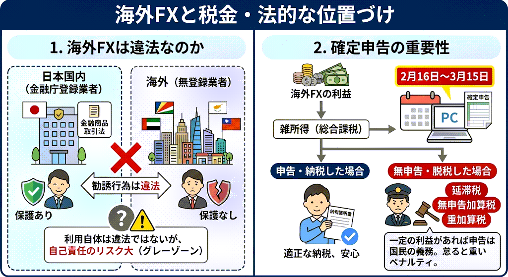 本記事では、海外FXの基本的な仕組みから、国内FXとの違い、メリット・デメリット、代表的な取引スタイル、税金や法的な位置づけ、そして長期的に勝ち残るための考え方までを網羅的に解説します。